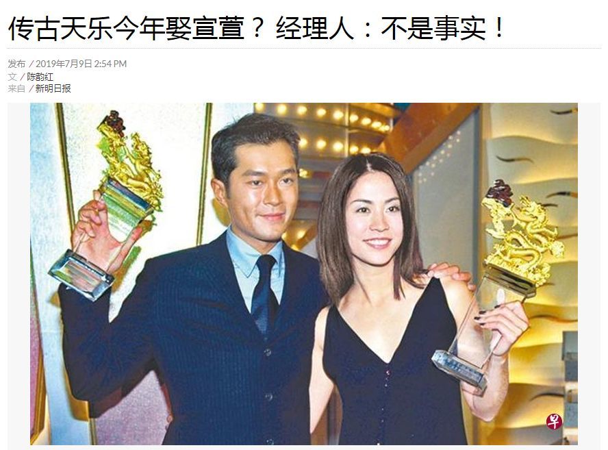 事实上,去年就有网友曝出过古天乐结婚的消息,并且结婚的对象就是与他合作多年的老搭档宣萱。