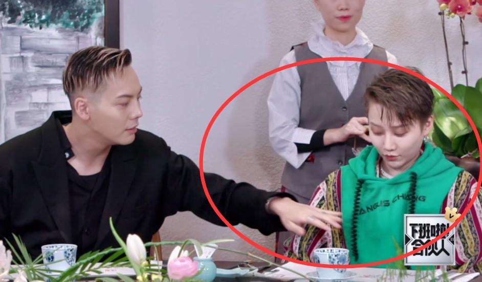 最后打完电话,陈伟霆还演戏上瘾了,做出了一个挂电话的动作,滴了一声之后,把手放在了刘雨昕的耳朵边,模仿的正是挂电话的一系列动作,再一次逗笑了全场啊。