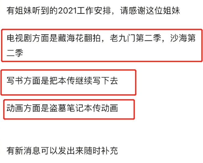 【南派三叔1月31日直播中透露新年影视计划】