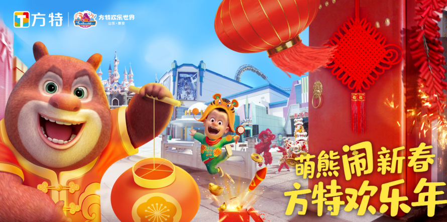 2017春节,泰安方特将结合“熊出没”IP元素,在大年初一至初十七(2月12日—2月28日),推出“萌熊闹新春,方特欢乐年”主题活动。游客不但能够观赏到粤狮萌熊歌舞联欢的盛装迎新,萌态百出的熊出没明星嘉年华贺岁,还可以打卡来自天下各地的特色年味小吃,逛吃嗨玩两不误,初一至初六更有惊喜福袋随机派发,牛气“豪”礼等你来拿!这个春节,与家人一路看《熊出没·狂野大陆》,游熊之家泰安方特,与熊出没大明星共同欢乐贺岁!
