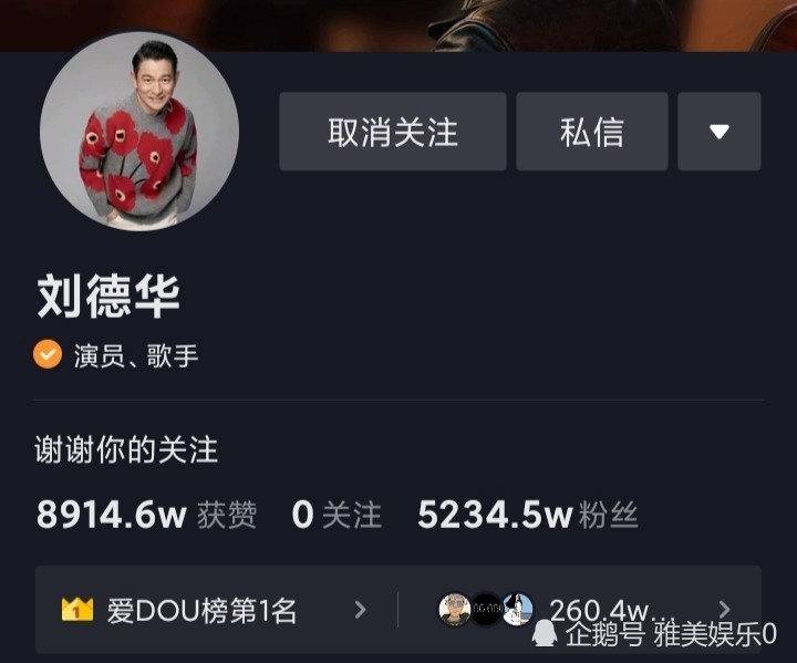 刘德华DY账号2天涨粉3-4千万,某些人又各种酸、各种黑,打着刘德华粉丝的名号,在各路明星视频底下留言评论冷言冷语,给华哥招黑。
