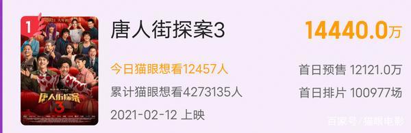 当然,电影好看才是大家希望的,唐探3的预售票房也达到了一种高度,本日得知,唐探3的预售票房已经达到高潮,破亿了!仅仅还未播出,就收到了大众热烈的反应。