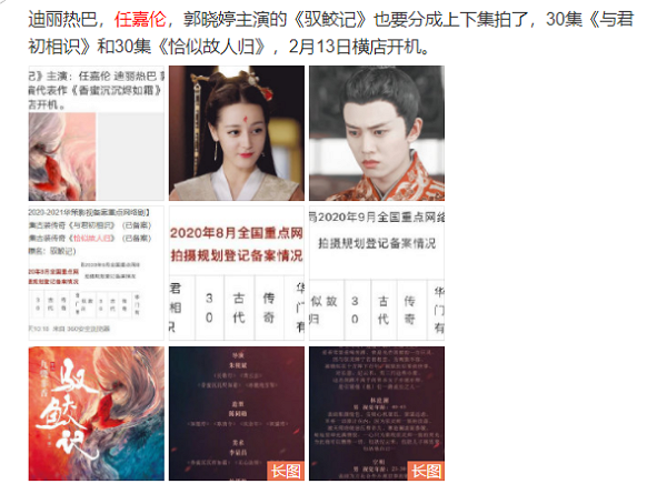 相信有很多小伙伴都听说过这部小说将会被影视化的消息,但却迟迟没有准确的时间传出,这次爆料的消息中,有了明确的时间,该剧集《驱鲛记》将会被分为上下集拍摄,并暂取名为《与君初相识》(30集)和《恰似故人归》(30集)。