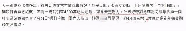 还记得前段时间, 刘德华 开通了全球首个社交账号,从而引发全网热议。毕竟是著名的 四大天王 之一,哪怕是已经步入老年,但仍旧是无数人心目中的男神,许多艺人同样也是把他当作偶像。而就在近日,台湾媒体对此事进行了报道,并透露该短视频平台花了一亿钱来邀请刘德华入驻。