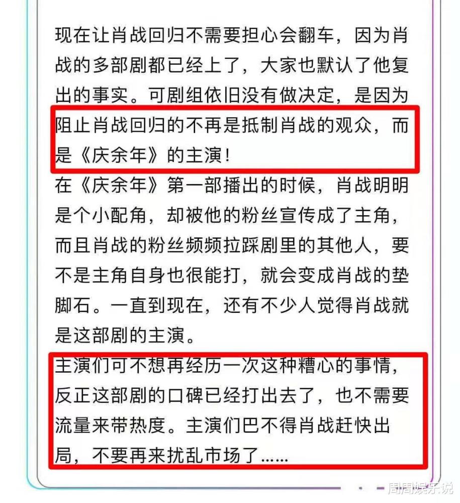 肖战的角色承先启后,但究竟是否非他不成,除了粉丝之外的多数人包括主演们,对这个并没有执念,甚至肖战的个人热度会盖过电视剧,所以还是希望能维持市场平衡,不要让个人大过剧集本身。