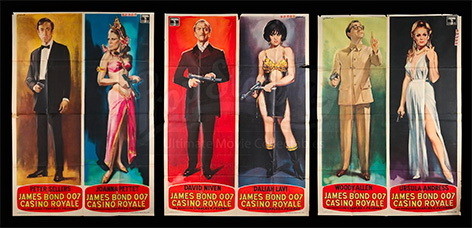 2020年10月的Prop Store拍卖会,呈现了100多幅詹姆斯·邦德(James Bond)的海报和相关艺术品。一张未经修复的,英国公映时的《诺博士》(1962)海报估价最高,预计价钱在8,000到10,000英镑之间。值得一提的是,1967年的间谍喜剧电影《皇家赌场》(大卫·尼文饰演邦德,伍迪·艾伦出演反派)虽然不在米高梅出品“正朔”之列,却也旁逸斜出很是惹眼——一幅当年的电影海报估价为2,000-4,000英镑之间。