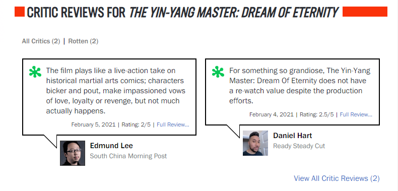 事实上,当楼主打开国外专业影评网站“烂番茄网”,并查找《晴雅集》这个电影时,只发现2条有效的评价,而且都是差评,其中一人还直接说电影没有再看一次的价值。