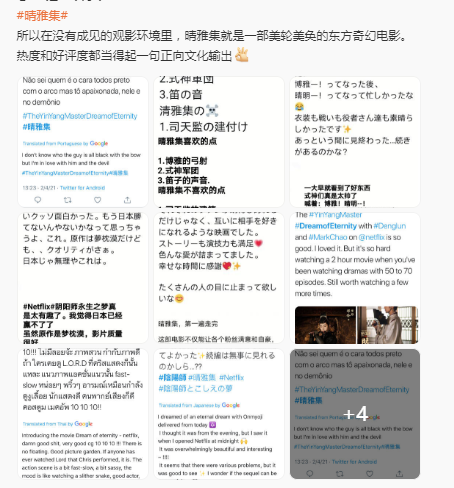 首先,国外的评论都是截取的,是经过挑选放到大家面前的,挑选者无疑是《晴雅集》的支持者。而且,他连逐字翻译都准备好了,身份不是忠实的粉丝就是电影的宣传工作者,那么他有可能会截取对电影欠好的评论放上来吗?