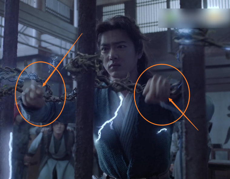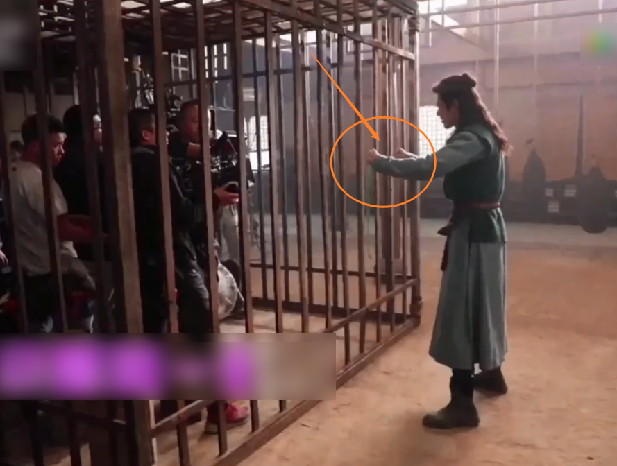 在剧中肖战需要演出一段前去解救牢笼里的女主戏份,从剧集正片里能看到肖战手中是抓着铁索一样的工具,但从网络上曝光的现场拍摄花絮来看,肖战当时手中是什么工具也没有的。