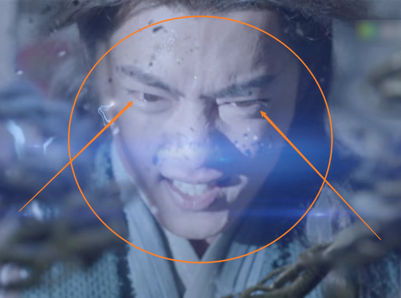 一般来说眼睛只有在情绪高涨的时候眼睛才会出现发红的状态,肖战在这段戏中需要呈现的就是拼死也要打开牢笼的意志,而在镜头近距离拍摄下看到那双发红的眼睛就知他入戏了。
