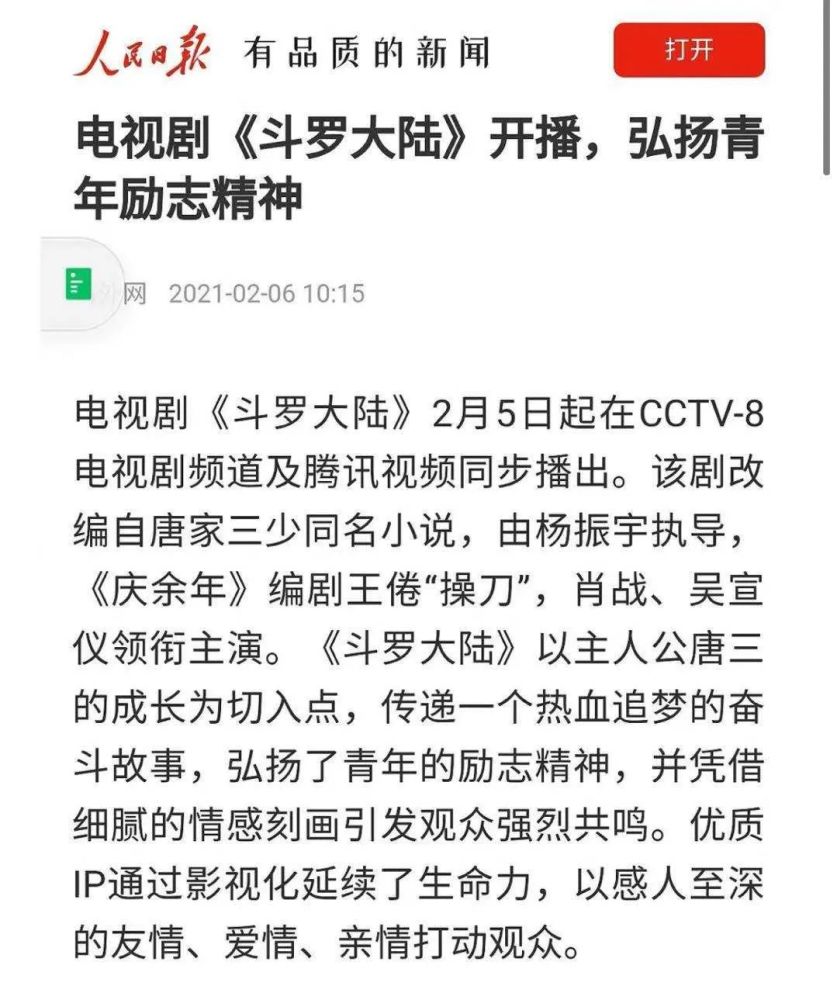 而且官媒直接报道这是一部能够弘扬中国传统文化的剧,可以让人意想到斗志、意念等的精神。