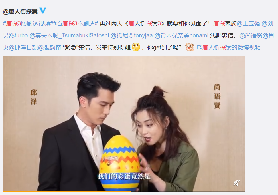 此外,陈思诚又出了一个小妙招,让《唐探3》几位主演劝导观众看完电影以后“不要剧透”,这样一来,《唐探3》就会保持很高的神秘性,就能吸引更多观众去观影了。此类方法在《复联4》上映期间也用过,比较适合这种有彩蛋的电影。