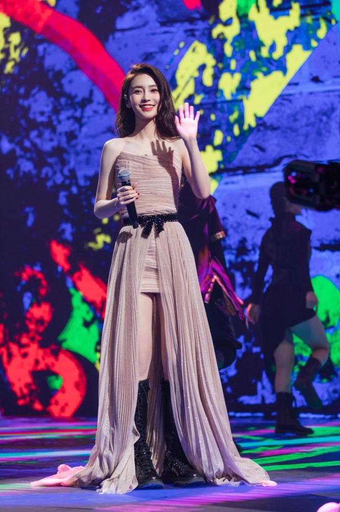 抹胸设计凸显出她的直角肩优势,纤细的大长腿更是让人移不开眼。有高挑身材的加持,即使是这样拖沓的裙摆都不会显得累赘。照旧轻松消化掉,真不愧是名副其实的人间消化剂了。