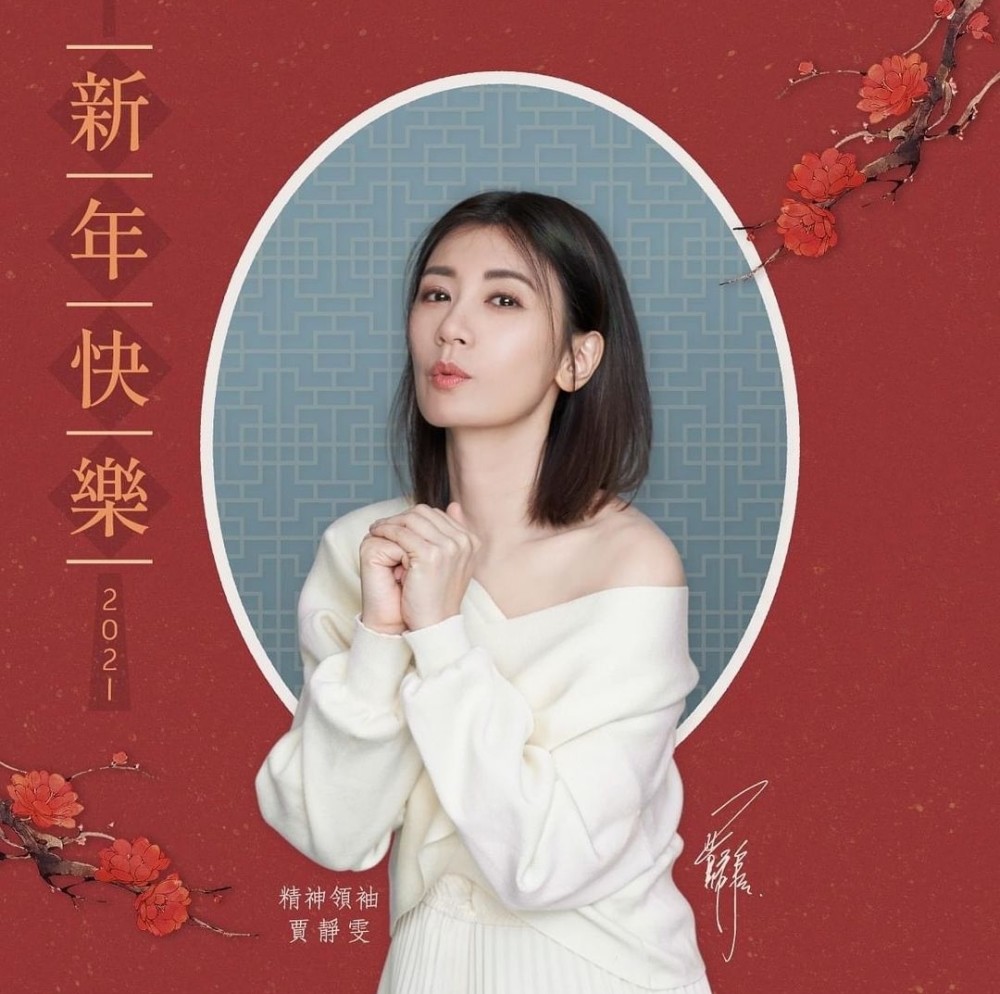 贾静雯和修杰楷也各自做了一张新年海报,女神还是女神,穿着白色露肩毛衣,化着精致妆容,双手作揖送祝福,画风小清新。