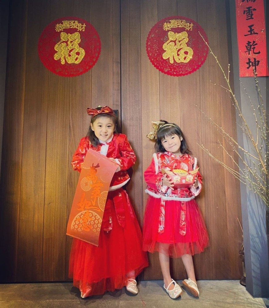 2月12日大年初一,贾静雯在社交平台上分享了咘咘波妞的萌照,为大家送新年祝福,并称这张照片很珍贵,而理由是姐妹俩都长大了,不想穿这些衣服,拍完了照片就立马脱掉,捂脸的表情包显得贾静雯很头疼,她啼笑皆非地问:明年还会有这样喜气的照片吗?
